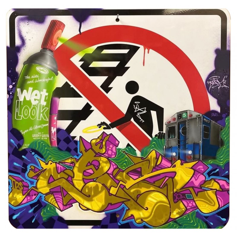 Original train sign from New York City hand paint by Rob "CES" Provenzano from the Bronx.